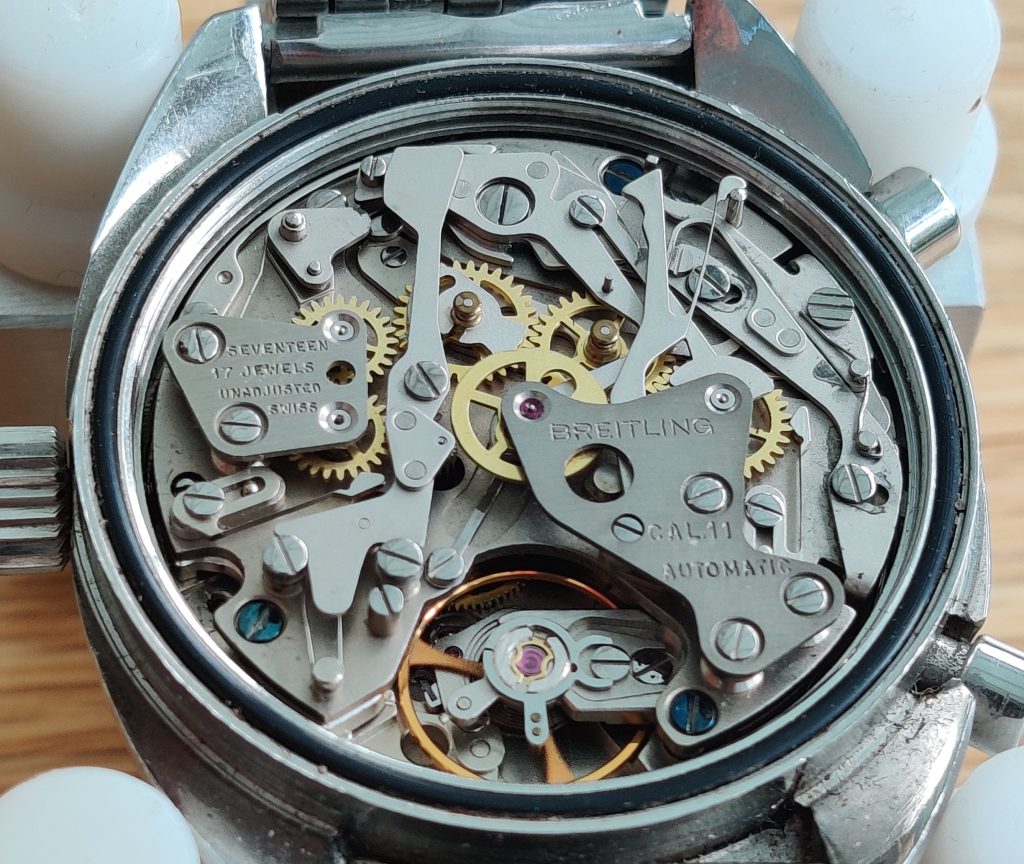If you can imagine the watch flipped vertically on its end so the crown stays on the left, removing the case back shows that the movement is actually upside down, at least according to all the inscribed text.